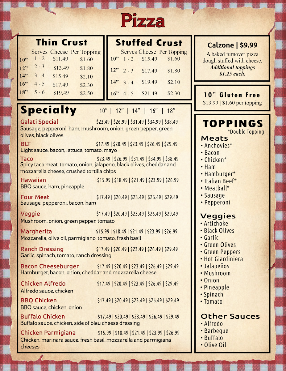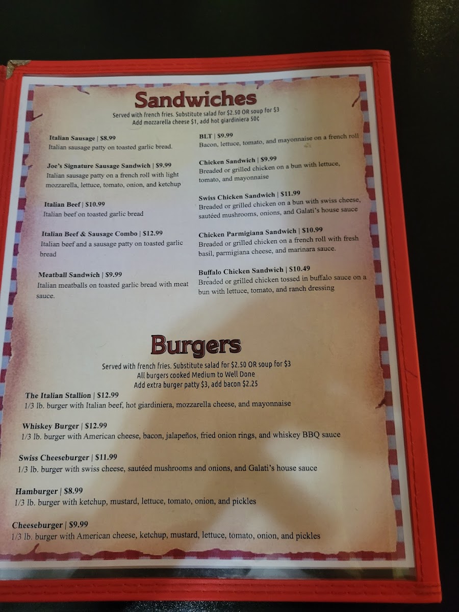 Welcome to Galati's Italian Restaurant & Pizzeria, a hidden gem located at 142 Cedar Ave, Lake Villa, IL. This charming eatery boasts an extensive menu that brings the heart of Italy right to your plate. Whether you're in the mood for classic pasta entrees like the luscious Ravioli Rosa or the comforting Chicken Parmigiana, there's something to satisfy every craving. Patrons rave about the homemade soups and the irresistible Bruschetta, perfect for starting your meal on a high note.